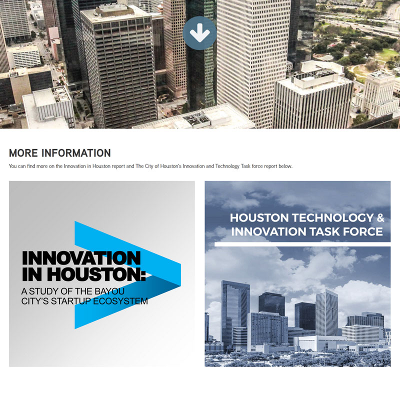I was asked to create a squeeze page for collecting interest statistics and contact information. The design needed to convey the young organization as a united front for the Houston startup ecosystem, while maintaining an edgy look for attracting a “millennial” audience. An aerial view of the City of Houston provides the backdrop for the introduction adding a stunning perspective to otherwise unexciting content.