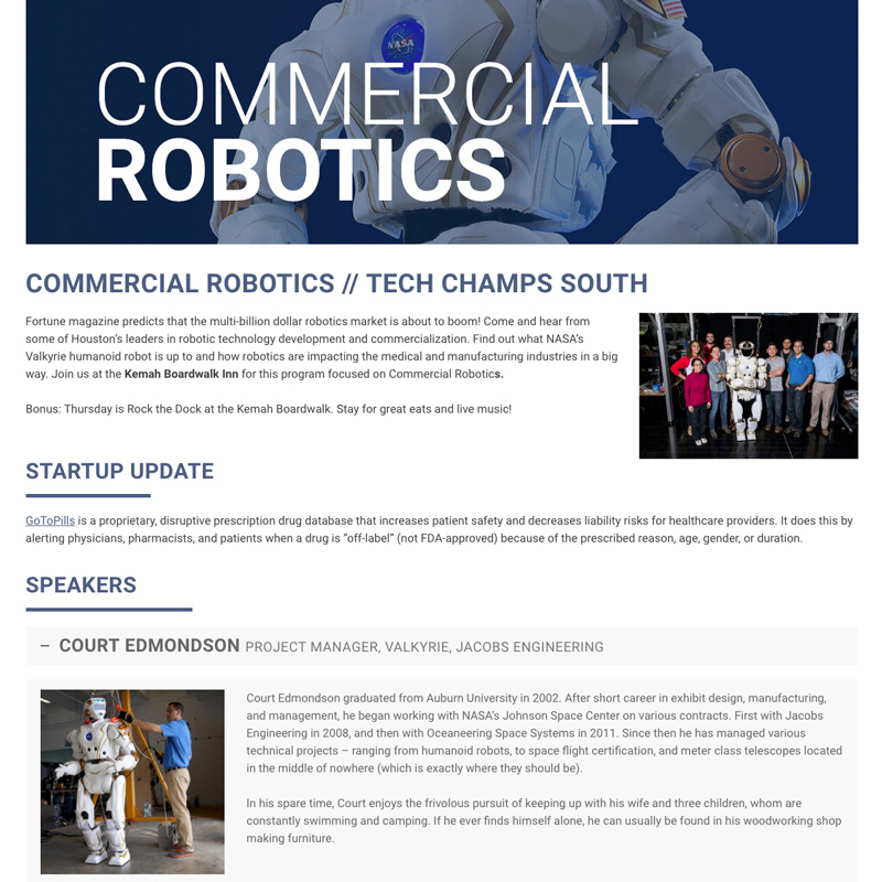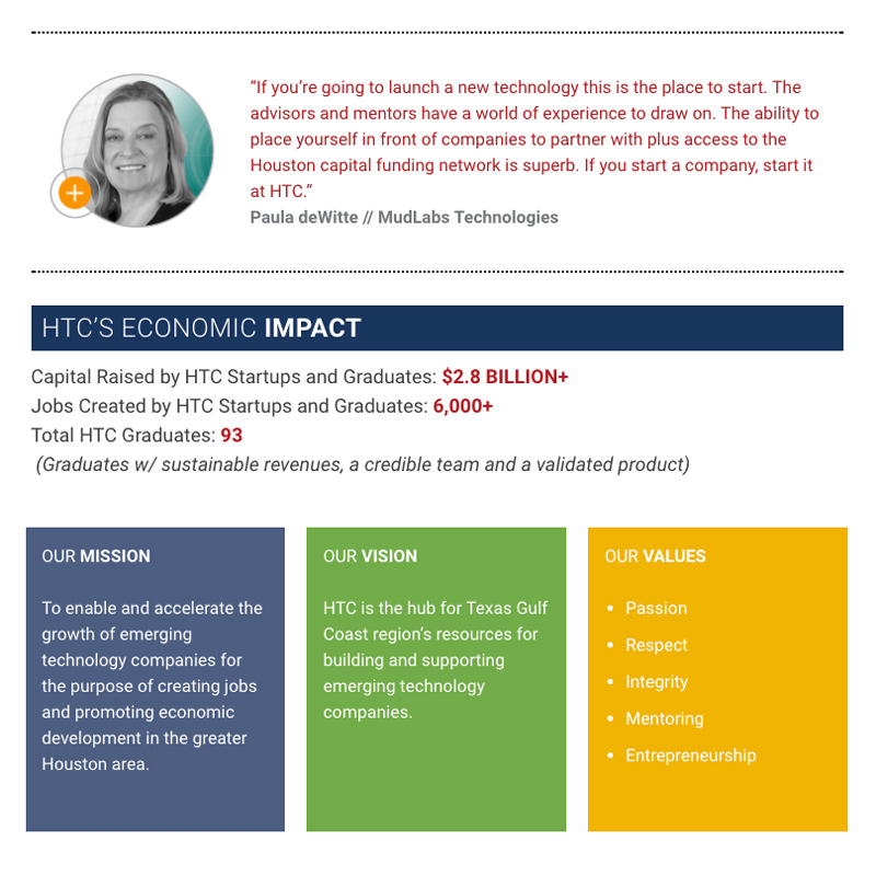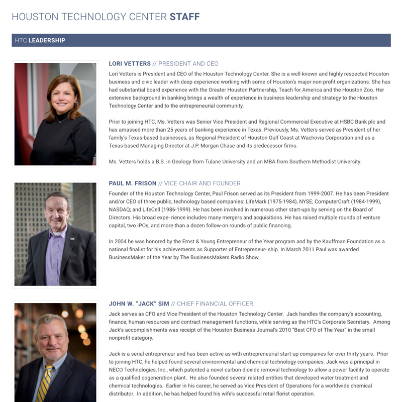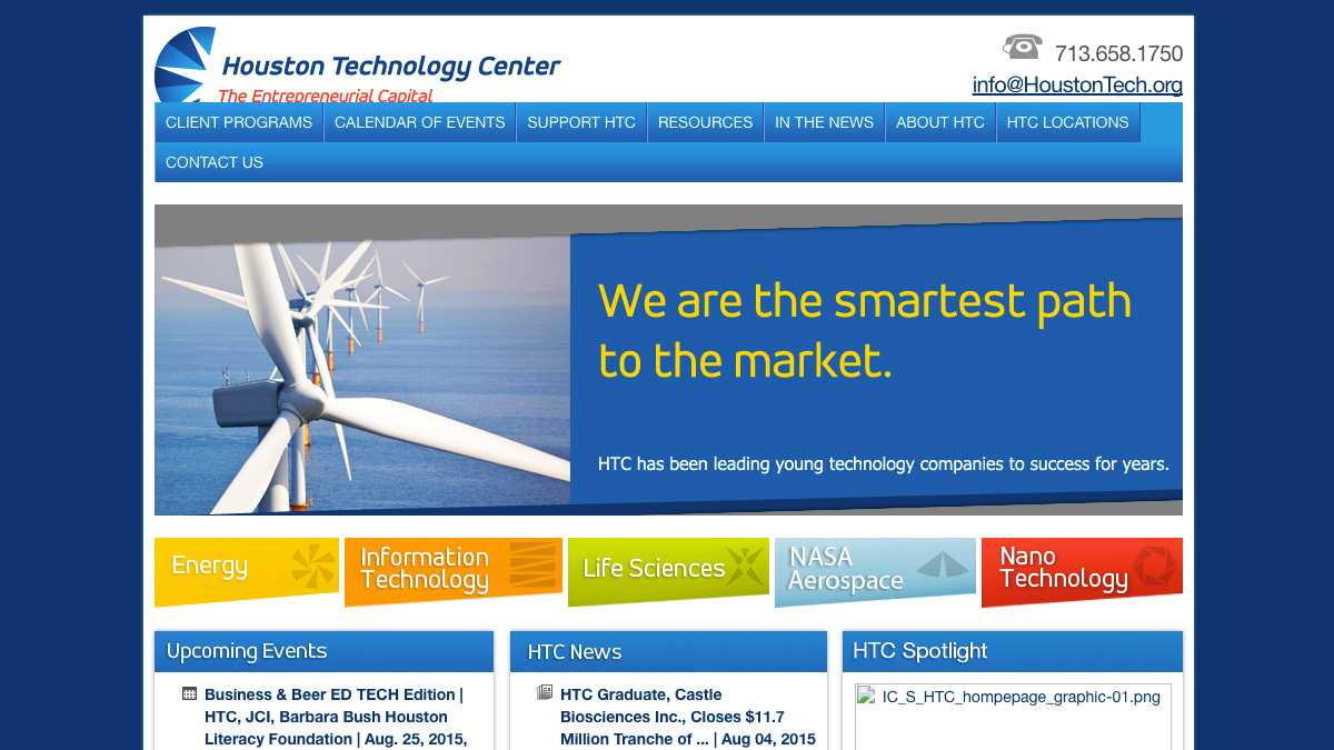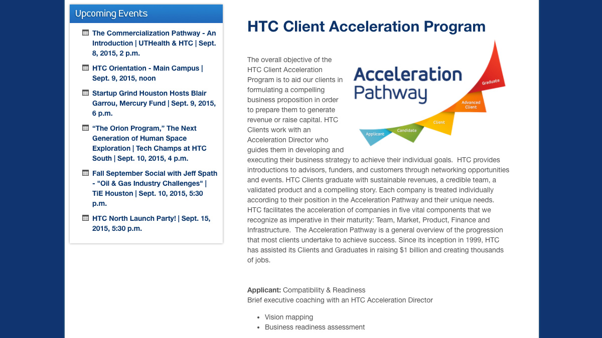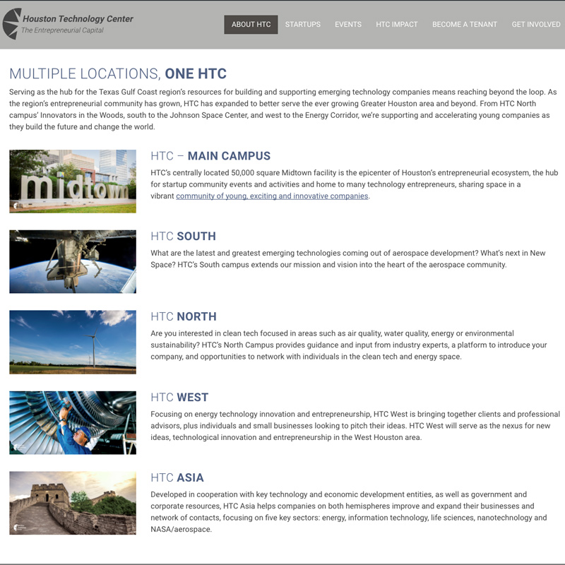 Because of HTC’s limited budget, Axiom was only able to do so much, and the gaps needed to be filled in. I then undertook the task of building out the website where Axiom left off-developing code, creating imagery and content-to assure the website functioned 100% to expectations. Then I maintained it, as needed.